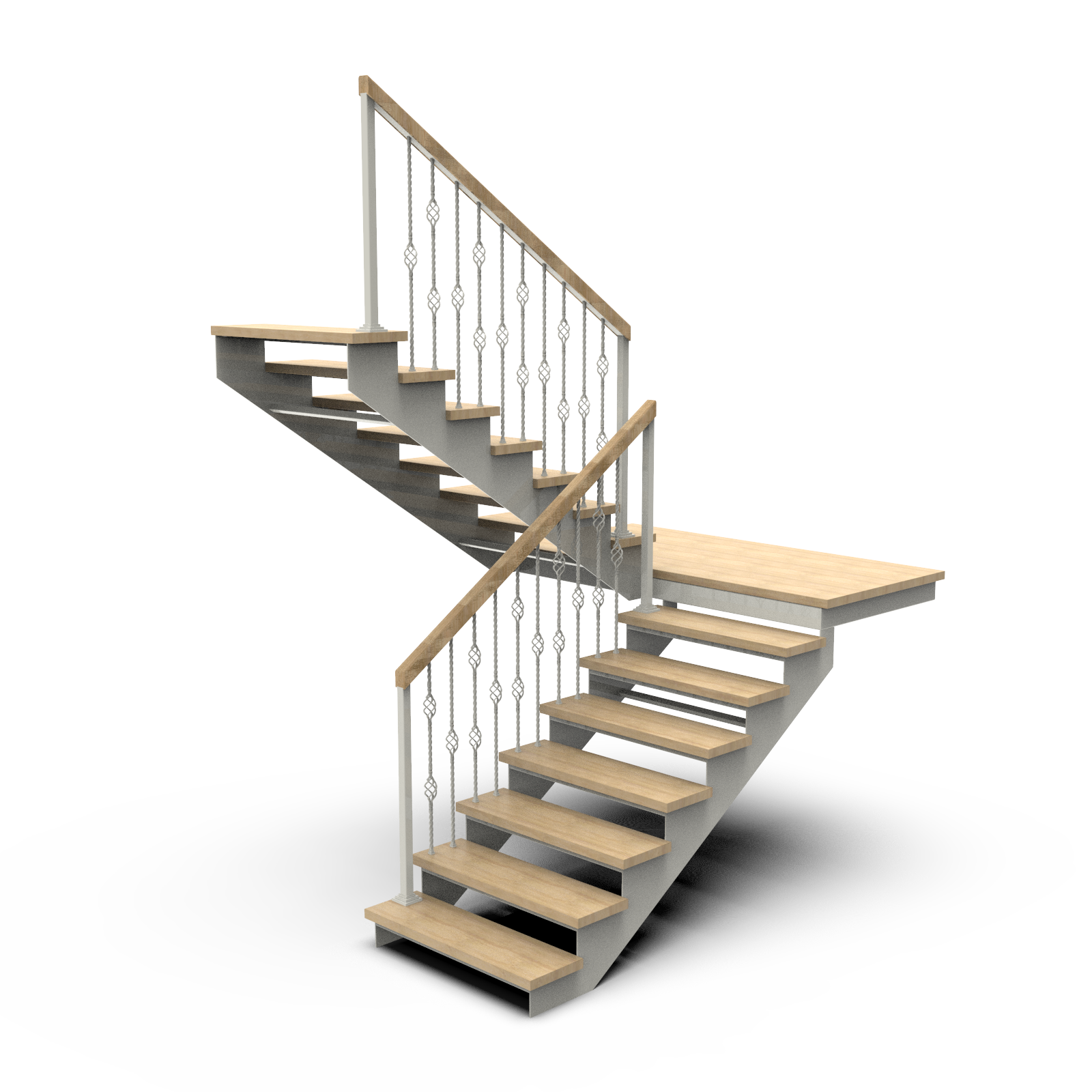 Монтаж первого варианта выполняется очень легко и просто. Следовательно, такая конструкция является более востребованной. При заказе такой лестницы количество балок может быть неограниченным. Обратившись к нам, вы сможете заказать лестницу в дом следующего типа: