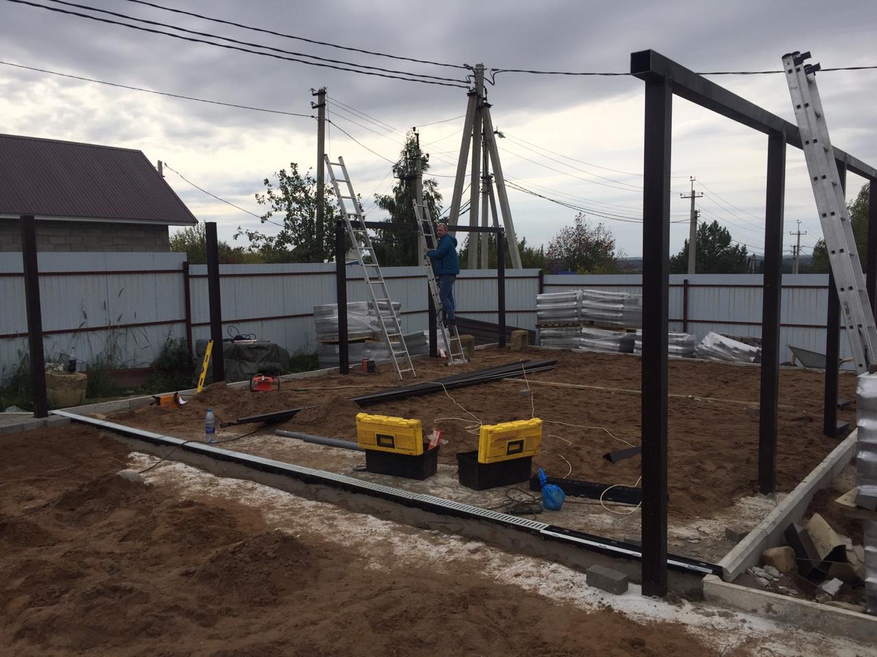 1. Установить навес с покрытием из профнастила толщиной 0.7 мм